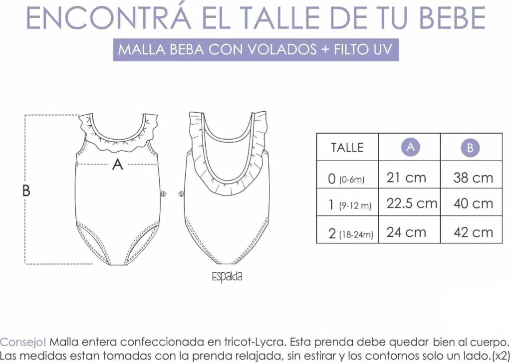 Enteriza bebe, con moño en espalda. Tiene broches para cambio de páñal.