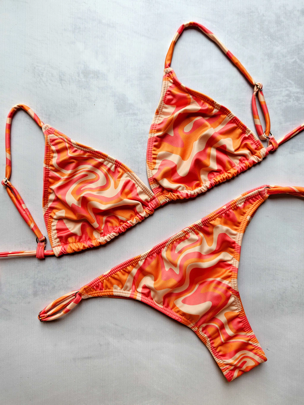 Corpiño triangulo con tiritas para atar. Colaless para atar.